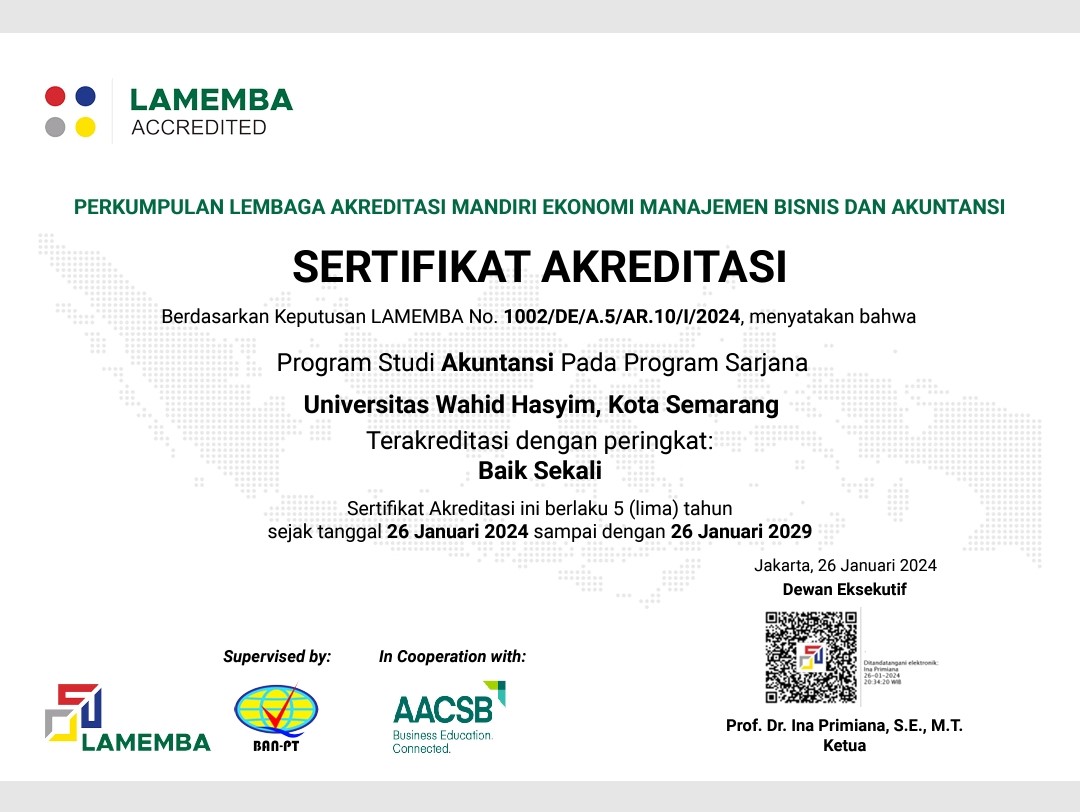 NamaTanggalNilaiLampiran AKREDITASI LAMEMBA MAGISTER MANAJEMEN S201-Feb-24BaikDownload AKREDITASI BAN-PT PRODI EKONOMI ISLAM14-Dec-21Baik SekaliDownload AKREDITASI LAMEMBA PRODI AKUNTANSI26-Jan-24Baik SekaliDownload AKREDITASI LAMEMBA PRODI MANAJEMEN24-Jun-25UnggulDownload
